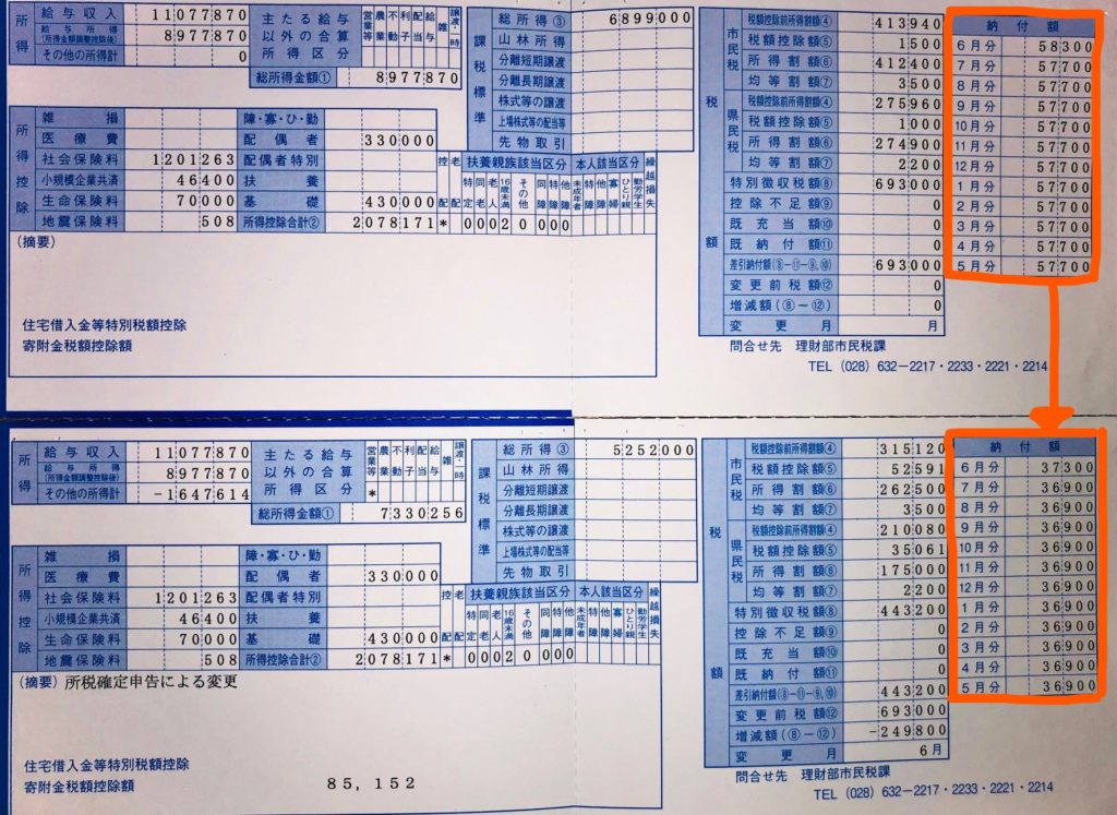 ついでに令和3年度住民税の申告前、申告後も公開しちゃいましょう。